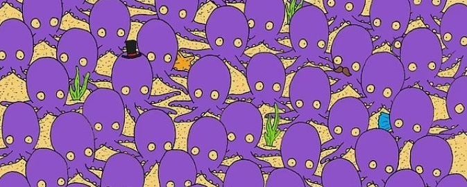 Jedna z těchto kreseb zobrazuje mnoho chobotnic. Na první pohled se bude zdát, že tam kromě chobotnic nikdo jiný není, ale není tomu tak – někde tam číhá ryba, píše jagranjosh.