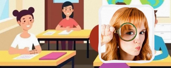 V poslední době jsou na webu velmi populární hádanky a různé optické iluze. A zde je jedna z nich. Před vámi je výjev ze zkušební síně. Mezi studenty je jeden, který při zkoušce podvádí.
