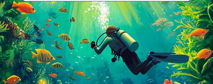 Na obrázku je potápěč uprostřed podmořské krajiny. Vaším úkolem je pozorně si obrázek prohlédnout a najít na něm hrubou chybu. Jeden z vyobrazených detailů je nemožný.