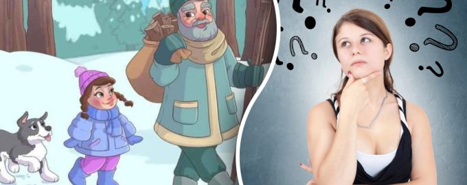Chyba na obrázku spočívá v tom, že dívka a pes zanechávají stopy ve sněhu, zatímco zároveň ve sněhu po dědečkovi žádné stopy nejsou.