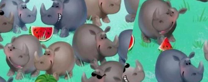 Podívejte se na tento vzrušující obrázek z Bright Side. Vaším úkolem je najít hrocha ukrytého mezi stádem nosorožců. Lidé s nadprůměrnou inteligencí mohou zvíře spatřit za 11 sekund.